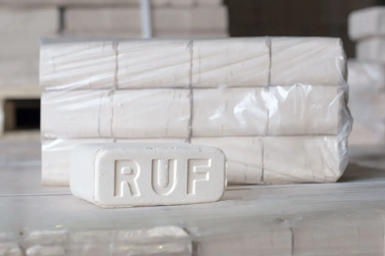 Топливные брикеты РУФ, произведены на высокотехнологичном оборудовании. Соответствуют международному стандарту качества DIN51731. Производятся из измельченной древесины до фракции «опилки».
